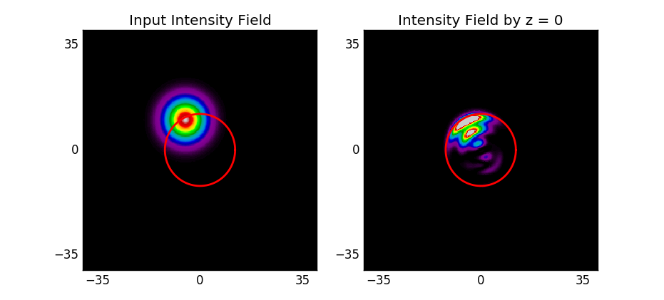 Fig.: Excitation and propagation of modes, simulated in a multimode fibre used for astronomy.
